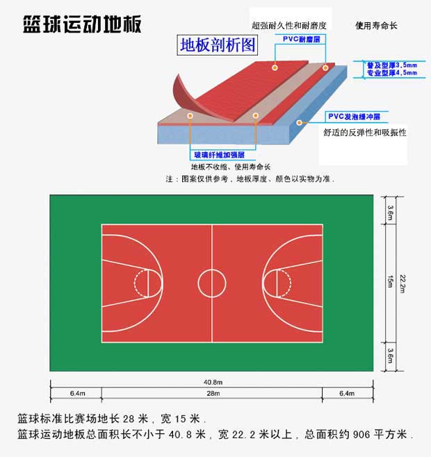 2.PVC彈性地板材料是國(guó)際正式的包括籃球在內(nèi)的球類運(yùn)動(dòng)場(chǎng)地的優(yōu)先選擇。只有PVC運(yùn)動(dòng)地板才可能被用來鋪設(shè)國(guó)際公認(rèn)的羽毛球、乒乓球、排球、手球等的比賽場(chǎng)地。