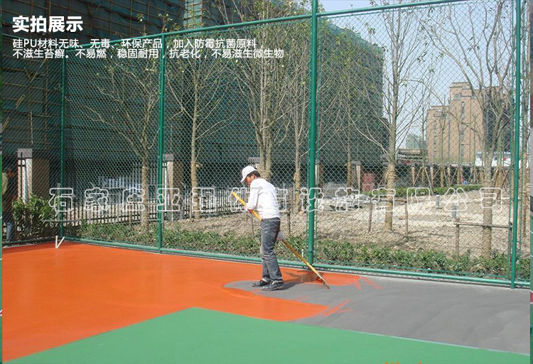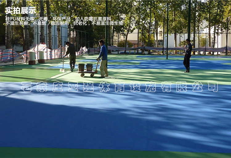 塑膠球場PU面層是由塑膠材料于現(xiàn)場混合鋪設(shè)、流平固化后形成的無接縫彩色彈性體,廣泛用于室內(nèi)外籃球場、網(wǎng)球場、羽毛球場、排球場的面層鋪設(shè)。塑膠球場具有色澤鮮艷、美觀舒適、防滑性能好、耐磨擦、耐酸堿、耐老化、使用壽命長、場地維護(hù)保養(yǎng)簡便等特點(diǎn),另外塑膠籃球場具有平整度好、抗壓強(qiáng)度高、硬度彈性適當(dāng)、物理性能穩(wěn)定的特性,有利于運(yùn)動員速度和技術(shù)的發(fā)揮,有效地提高運(yùn)動成績,降低摔傷率,深受運(yùn)動員及廣大體育愛好者的歡迎。也是公認(rèn)的全天候室內(nèi)外運(yùn)動場地坪材料。