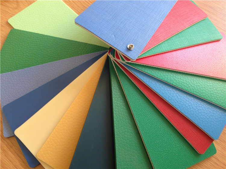 多層結(jié)構(gòu)疊壓而成,一般有耐磨層(含UV處理)、玻璃纖維層、彈性發(fā)泡層、基層等。近幾年P(guān)VC運(yùn)動(dòng)地板應(yīng)用非常廣泛,