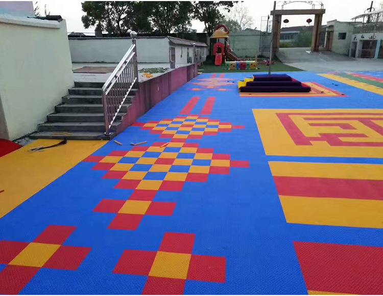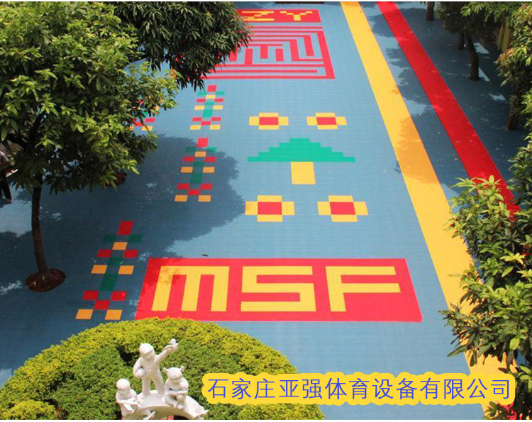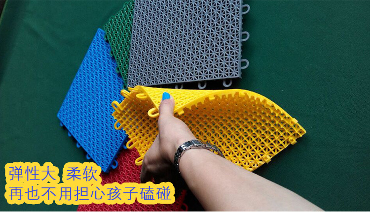 6.安全防護(hù):全眾懸浮式拼裝地板特有的專利設(shè)計(拼裝地板底部跟支撐柱支撐,拱形排水槽,邊緣采用公扣母扣銜接)很好