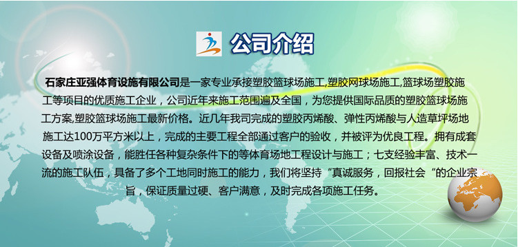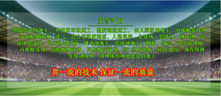 7.性價比高:在同類產(chǎn)品當(dāng)中性價比最高,使用該產(chǎn)品投資少、維護(hù)成本低、檔次高、見效快,是各類運動場地鋪設(shè)的最佳